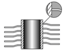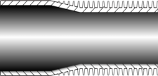 A aleta é envolvida sob tensão ao redor do tubo base, criando uma ondulação no pé e sendo soldada ao tubo nas extremidades. Temperatura máxima de operação: 250ºC.